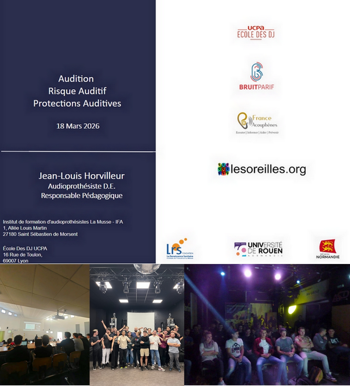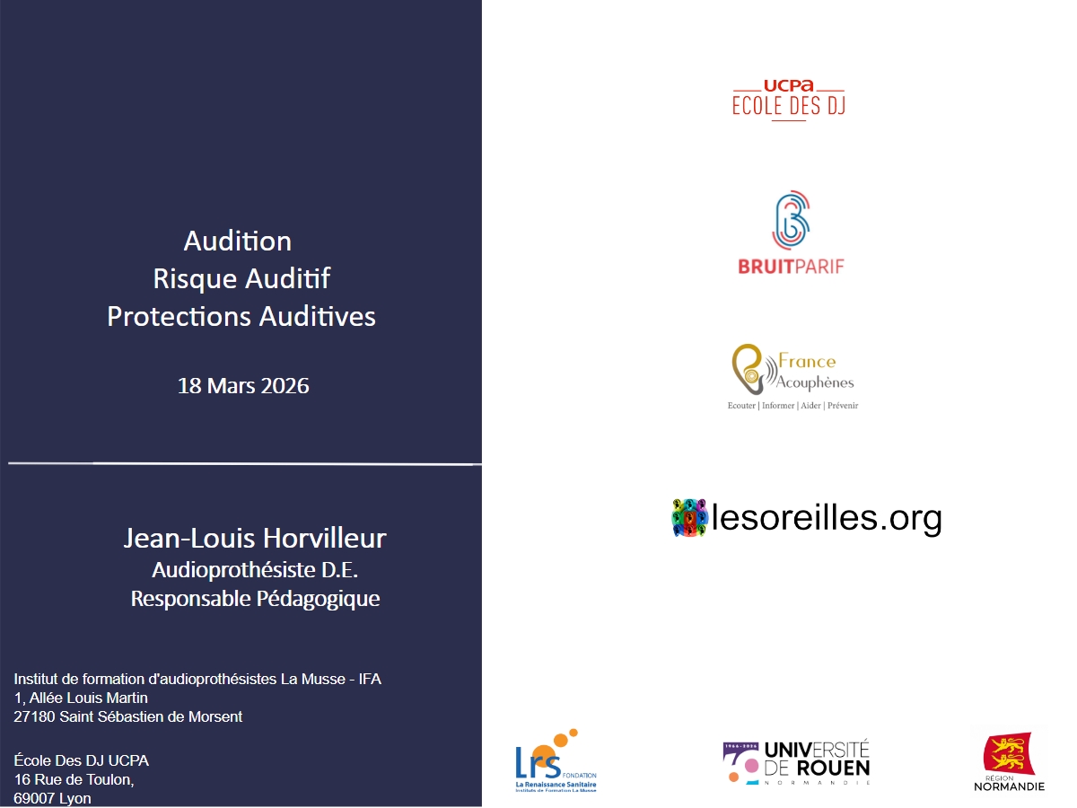 Le 18 AVril 2026 eu lieu la 16ème session animée par J-L Horvilleur, en partenariat avec Bruitparif France Acouphènes et www.lesoreilles.org